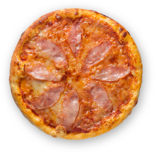 Тесто пицца, Соус Пицца, Моцарелла, Полендвичка, Грудинка В/К, Салями, Огурцы маринованные, Лук репчатый, Сметанно-чесночный соус