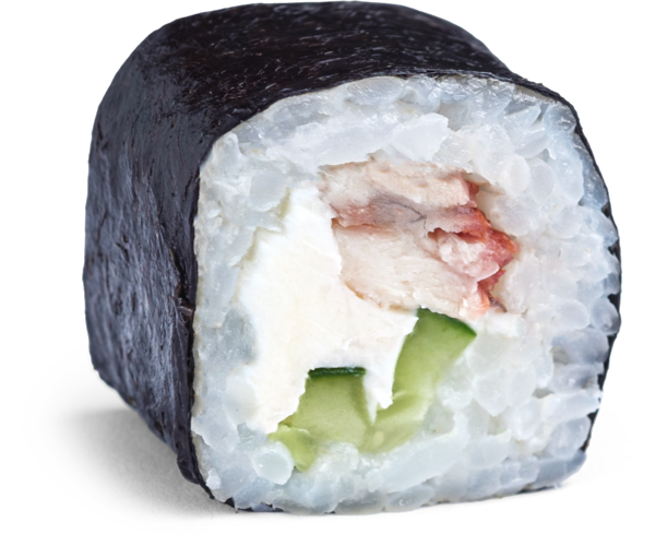 креветки тигровые, сливочный сыр, огурец, рис, нори