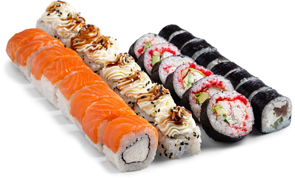 Ролл с авокадо, Ролл с угрем, Ролл с тунцом, Ролл с томаго, Ролл с огурцом, Ролл с лососем, Ролл с креветкой, Ролл с копчёным лососем, Имбирь, Васаби, Соевый соус