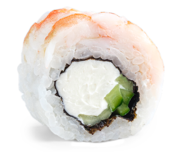 креветки тигровые, сливочный сыр, огурец, рис, нори