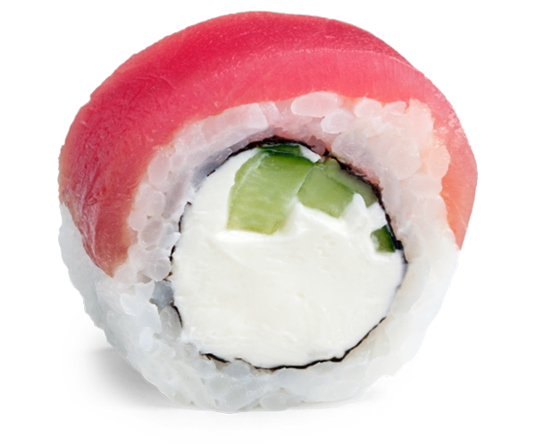 лосось терияки, сливочный сыр, огурец, стружка тунца, рис, нори