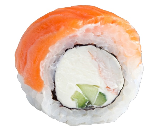 лосось, креветки тигровые, сливочный сыр, огурец, рис, нори