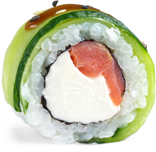 лосось копченый, сливочный сыр, огурец, терияки соус, кунжут, рис, нори