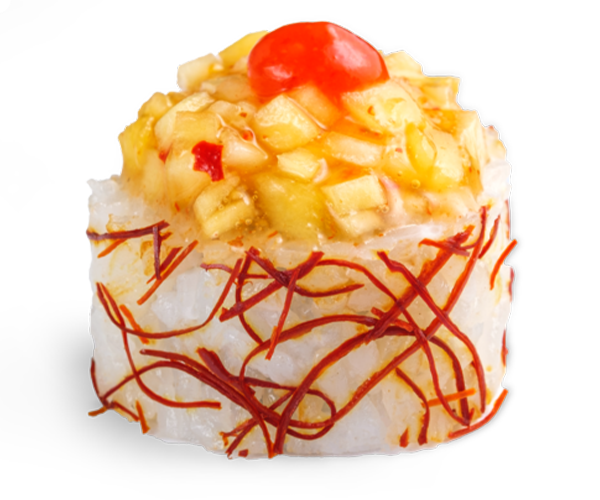 лосось, сливочный сыр, манго, соус чили сладкий, нити чили, соус шрирача, рис, нори