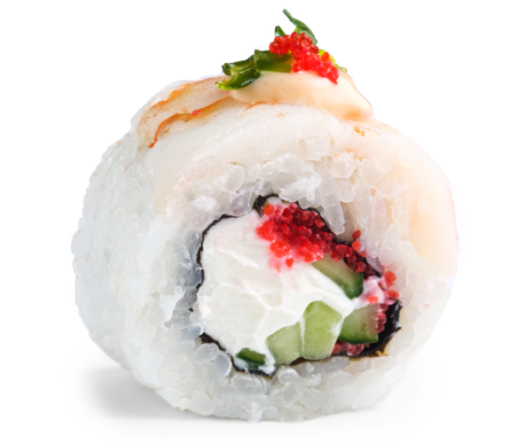 креветки тигровые, сливочный сыр, огурец, икра масаго, рис, нори