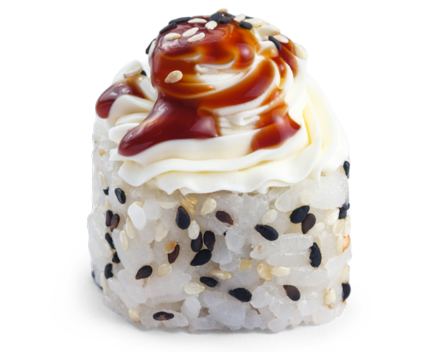 угорь жареный, сливочный сыр, огурец, авокадо, тамаго, соус унаги, кунжут, рис, нори