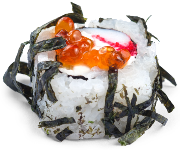 лосось, сливочный сыр, авокадо, огурец, икра лососевая, икра масаго, рис, нори