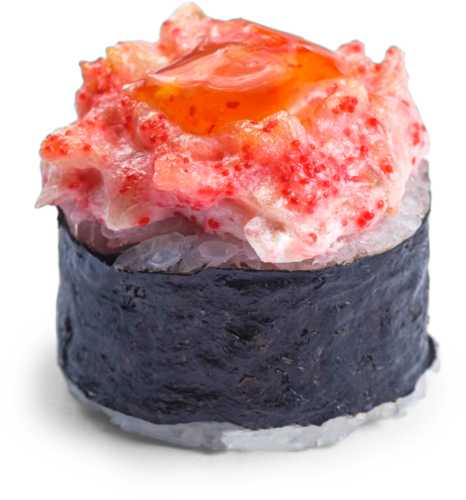 тунец, сливочный сыр, огурец, икра масаго, майонез, соус чили сладкий, рис, нори