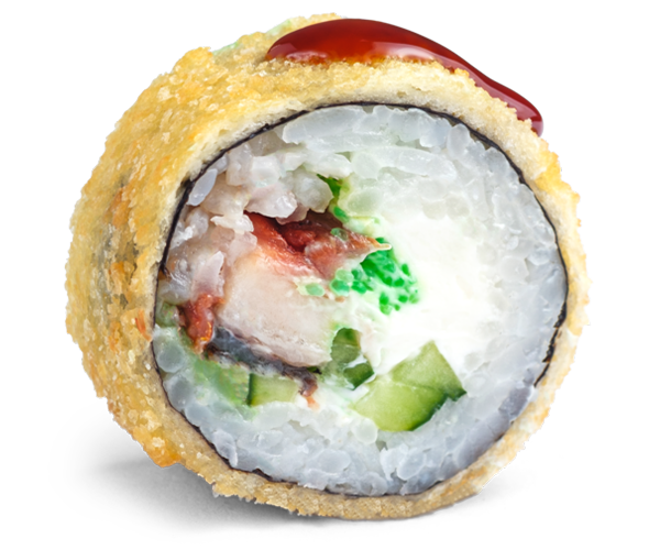 угорь жареный, сливочный сыр, икра масаго, огурец, рис, нори